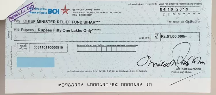 Being considered as a golden heart, Amitabh Bachchan continued his charity work by donating Rs 51 lakh towards CM Relief Fund in Bihar.