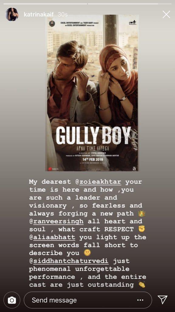 Other than the review of audiences and critics, a host of celebrities also stand in awe of the film. Not only did they sing praises on the performances of the leading actors but also the supporting cast which comprises of Vijay Raaz, Vijay Varma, Siddhant Chaturvedi, and many others. Alia’s friend - Bollywood actor Katrina Kaif also saw the film, and she was all praises for Alia. Katrina took to Instagram to share her review of the film.