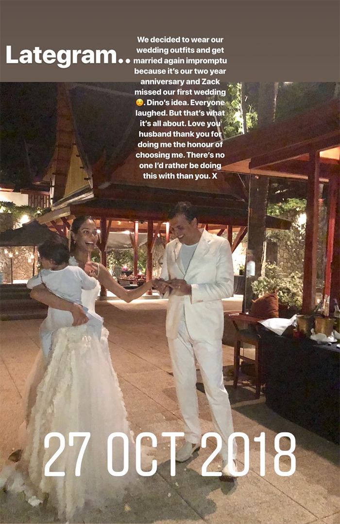 Also, Lisa Haydon shared a photo of her and her husband Dino, dressed the same wedding outfits from two years ago, and exchanging the rings on their second wedding anniversary. And this time, their baby son Zack Lalvani was there to witness Mom and Dad’s special day!