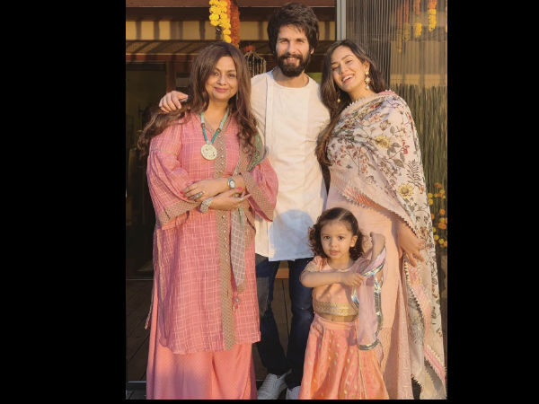 On Diwali festival, Mira posted an image without the appearance of her little son, Zain. Still, it's a lovely image with adorable daughter Misha Shahid, her husband Shahid Kapoor and Neelima Azeem, Mira's mother-in-law.