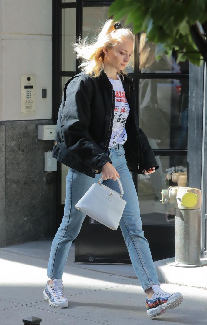 When our mysterious Sansa Stark from Game of Thrones comes to her normal life, she is truly a fashionista. In this picture, she completed the outfit with a black scrunchie, sporty but cute, right?