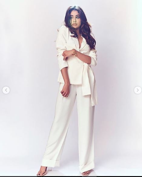 Much-loved starlet Janhvi Kapoor once again turned up the trendy hue with her latest stunning pictures in a powerful white pantsuit by Judy Zhang.