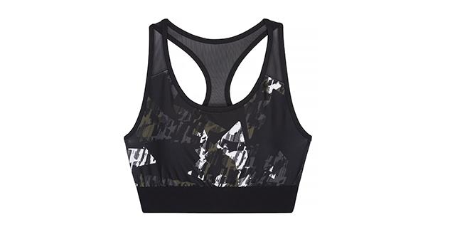 This women’s sports bra is designed for different types of workout. It is low impact and in jacquard textured camo-print activewear. It would be a perfect match when wearing it with colour sports leggings and trainers for an exercise class or a long-distance cycle.