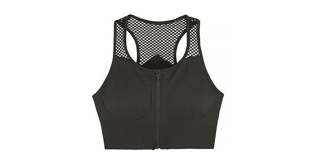 This medium-impact crop top with a front-fastening zip is suitable for aerobic exercise, yoga or boxing