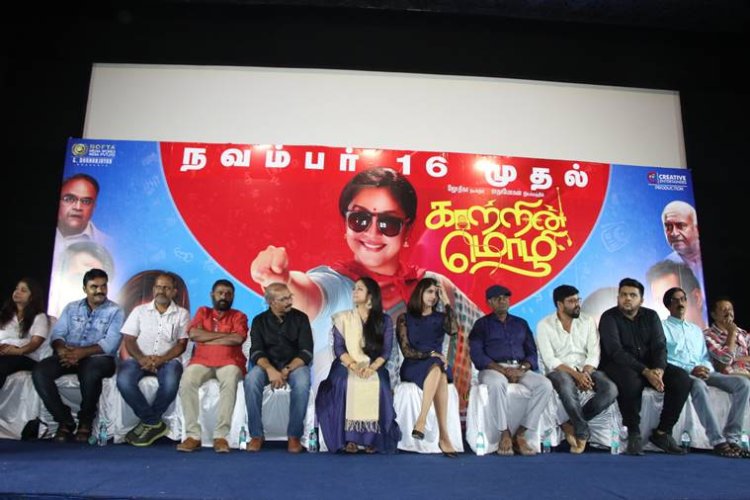 The producer of Kaatrin Mozhi screened a trailer lasting two minutes in the press. Also present in the event were Jyothika, Lakshmi Manchu, Vidaarth, Radha Mohan, AH Kaashif, and G Dhananjayan.